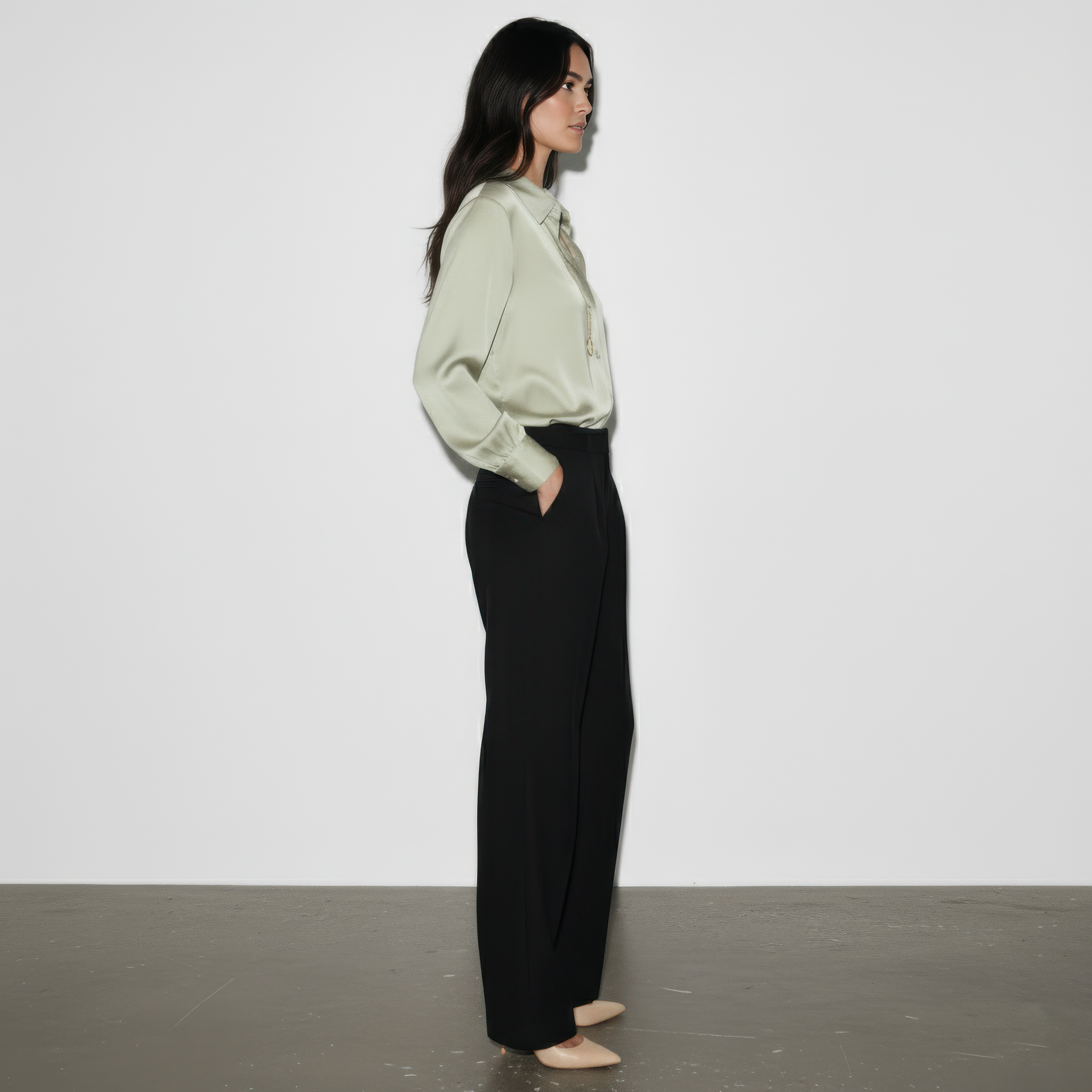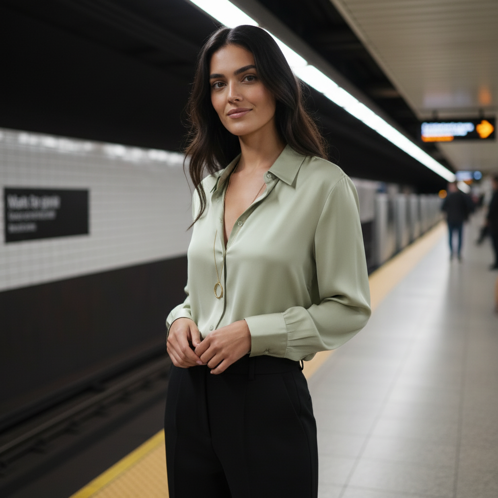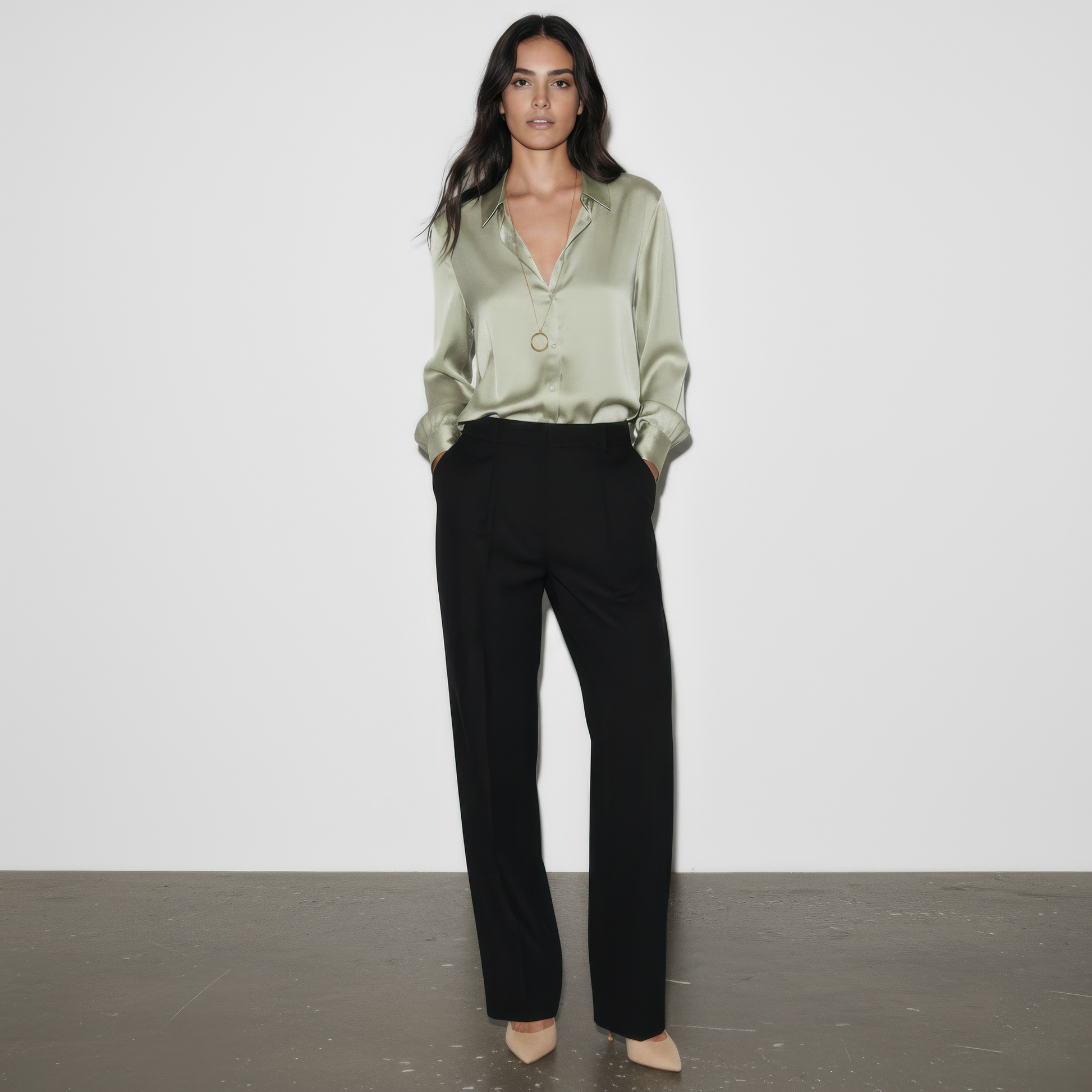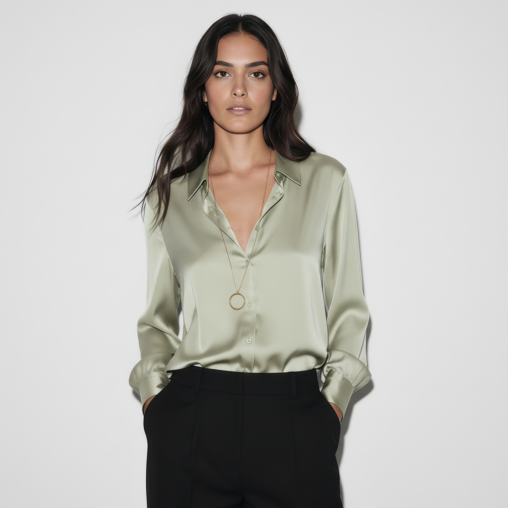 La Blusa Camila es el equilibrio perfecto entre sofisticación y comodidad. Confeccionada en tejido satinado de lujo, su caída fluida realza la silueta y aporta un acabado de brillo elegante que no pasa desapercibido.