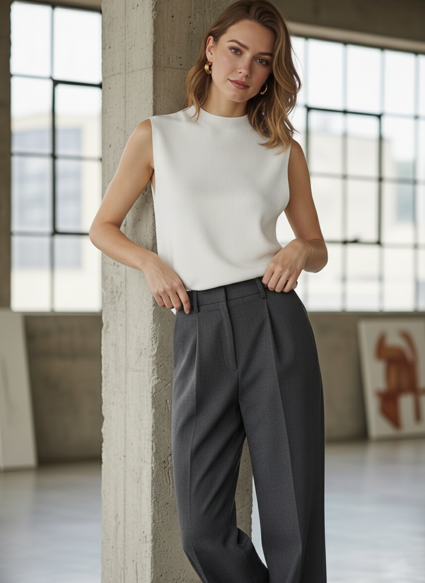 Una prenda que redefine lo esencial. Esta camiseta sin mangas de punto combina elegancia, comodidad y versatilidaden un diseño limpio que se adapta a cualquier estilo. Su tejido ligero y de caída impecable la convierte en el básico perfecto para elevar tu día a día con un aire moderno y sofisticado.